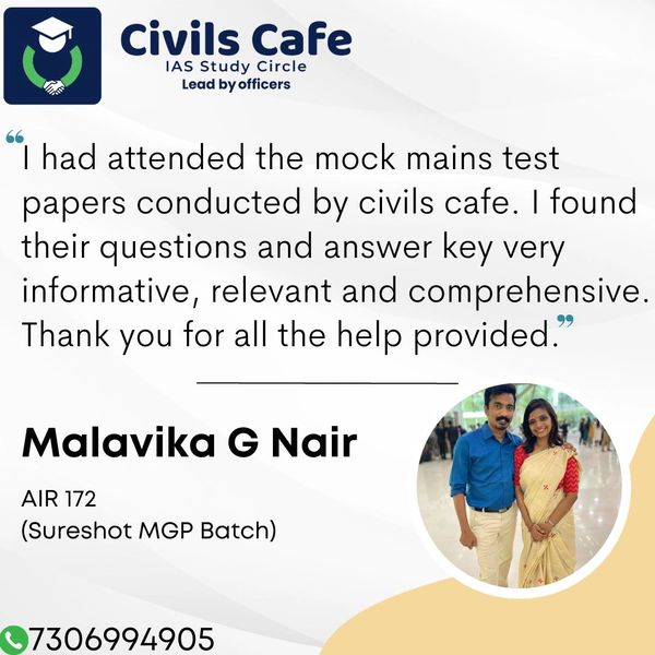 "I had attended the mock mains test papers conducted by civils cafe. I found their questions and answer key very informative, relevant and comprehensive. Thank you for all the help provided."